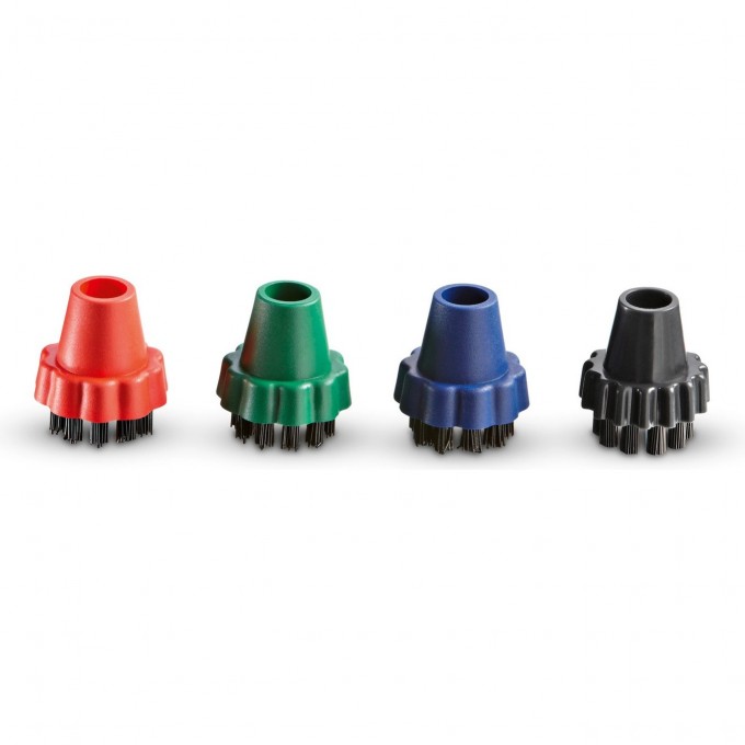 Комплект круглых щёток Karcher 2.860-231 применяется совместно с паропылесосами SV 1802 и SV 1902. Эти щетки - отличные помощники при уборке кухни и ванной. Помогут сэкономить время и силы на малоприятный труд. Мягкая щетина бережно ототрет грязь не только с плоских, но и с фигурных поверхностей, не повреждая их. Практичное разделение цветов позволяет использовать каждую щетку для конкретных целей.